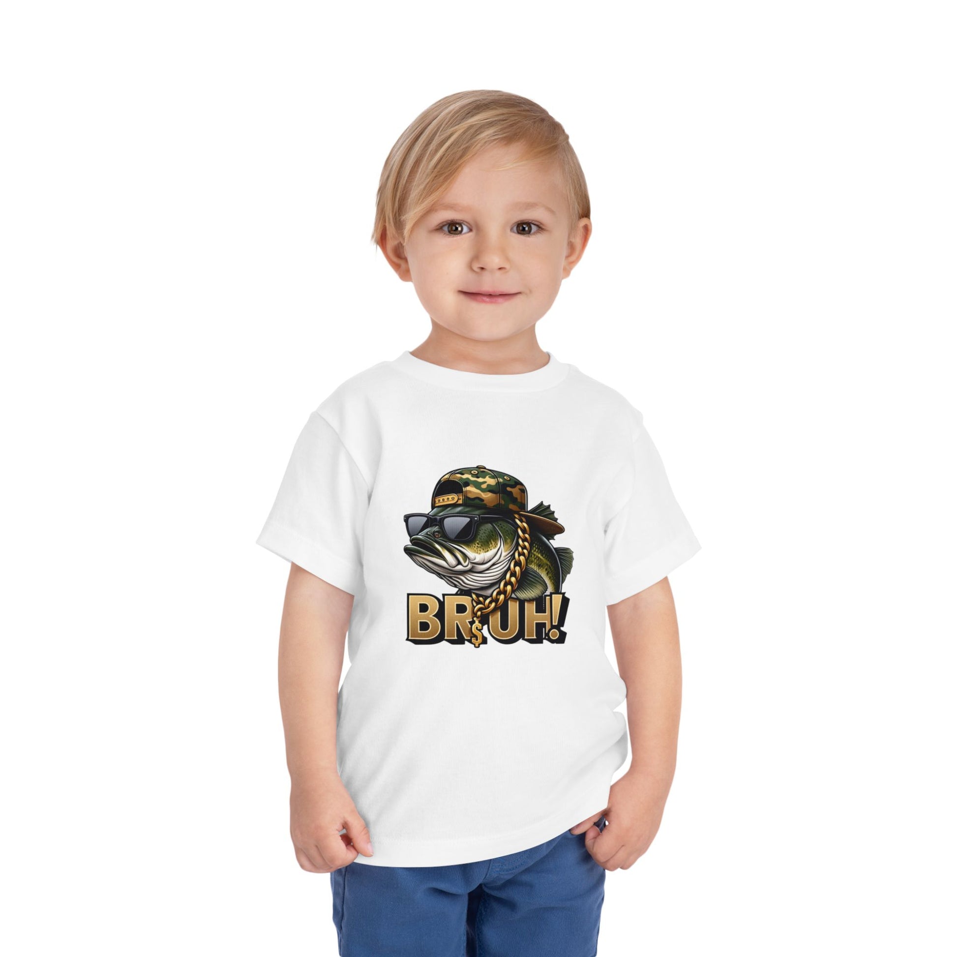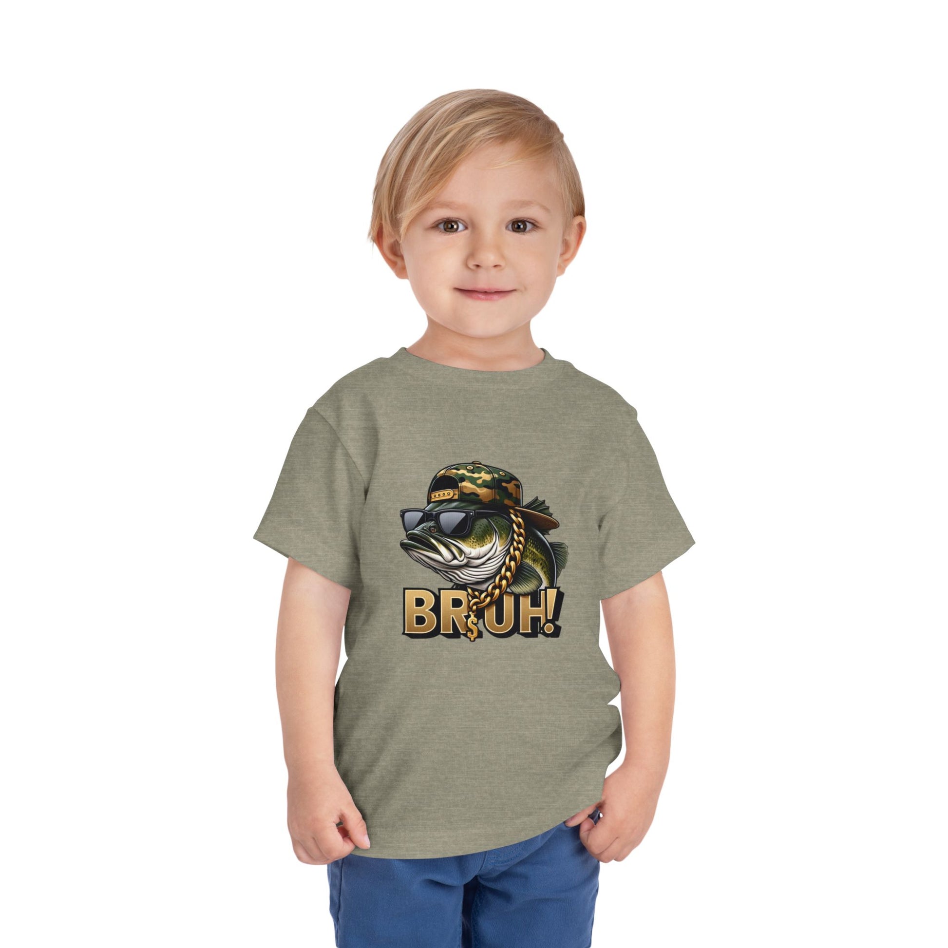 Bruh Fish Toddler Tee - Cool Camo Bass Graphic Shirt