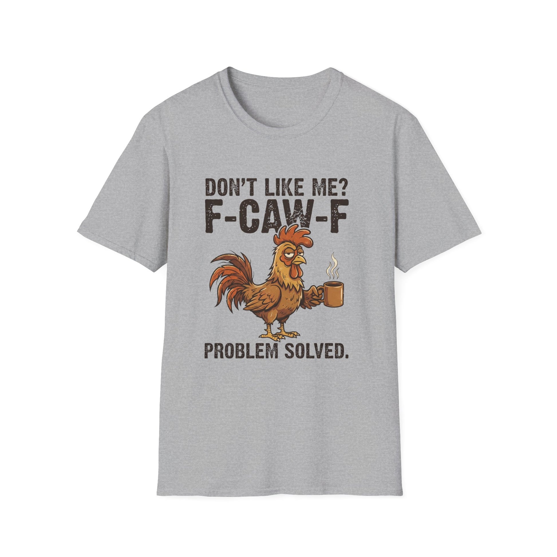 Funny Rooster T-Shirt — "Don't Like Me? F-CAW-F" Coffee Graphic Tee