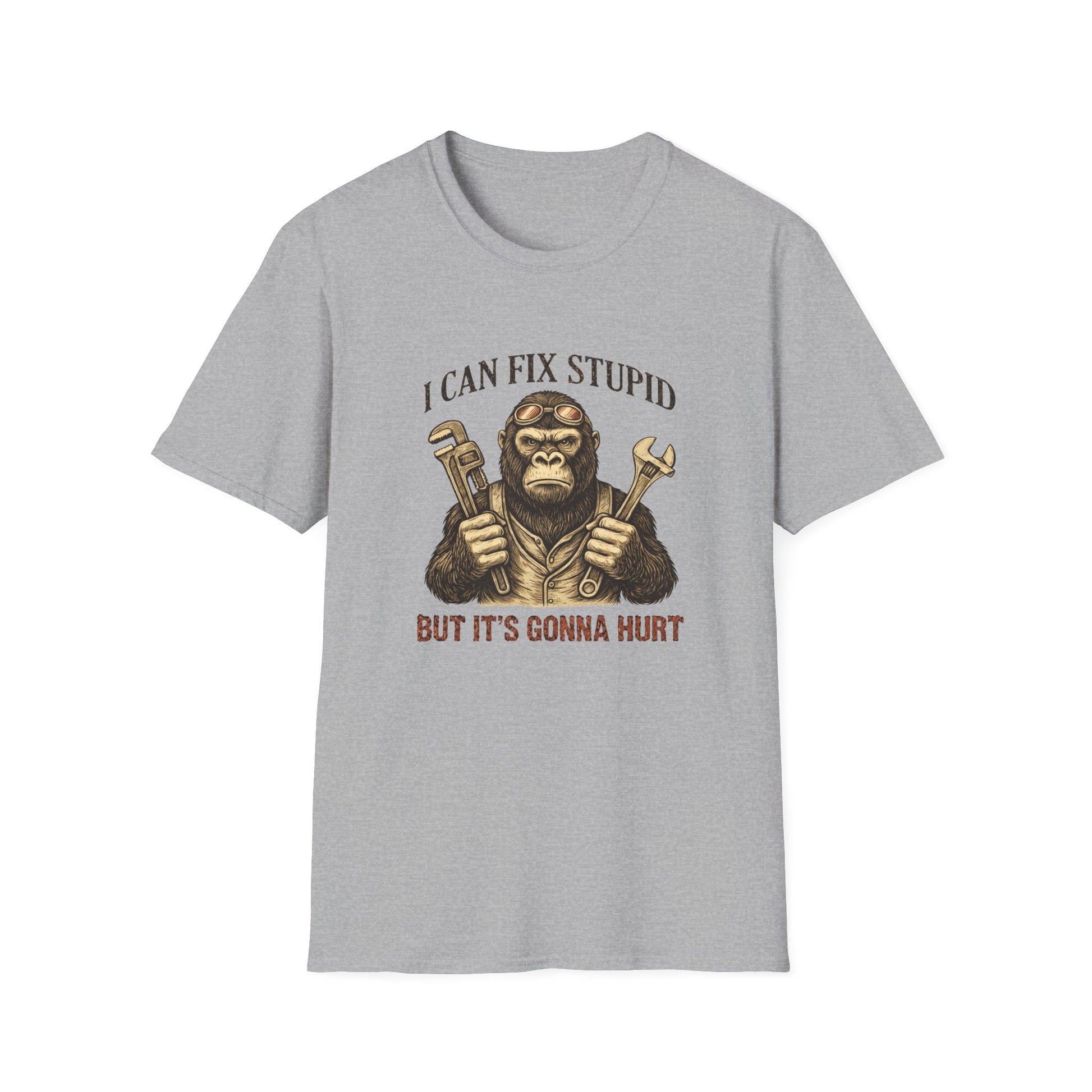 I Can Fix Stupid Monkey Mechanic T-Shirt — 'But It's Gonna Hurt' Humor Tee