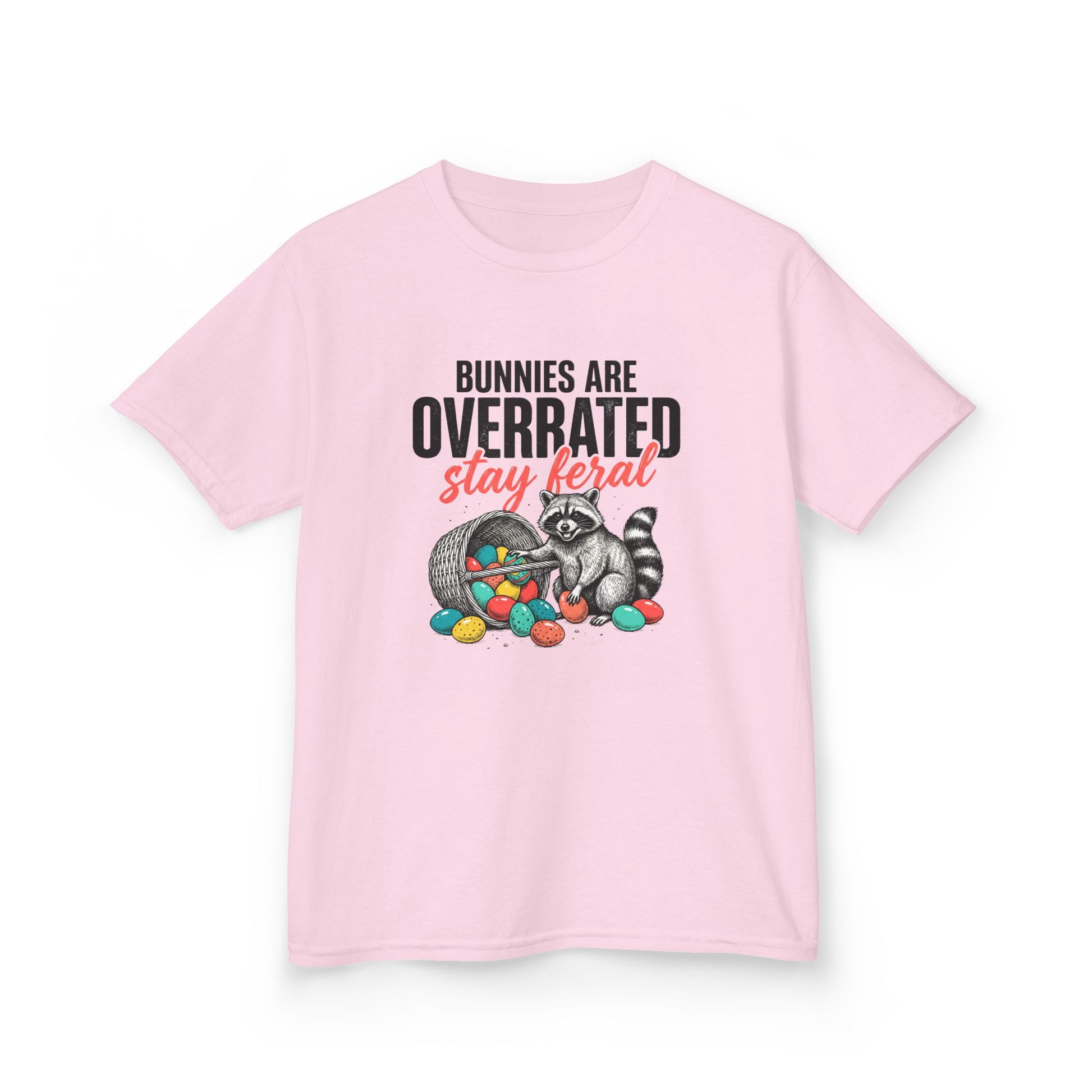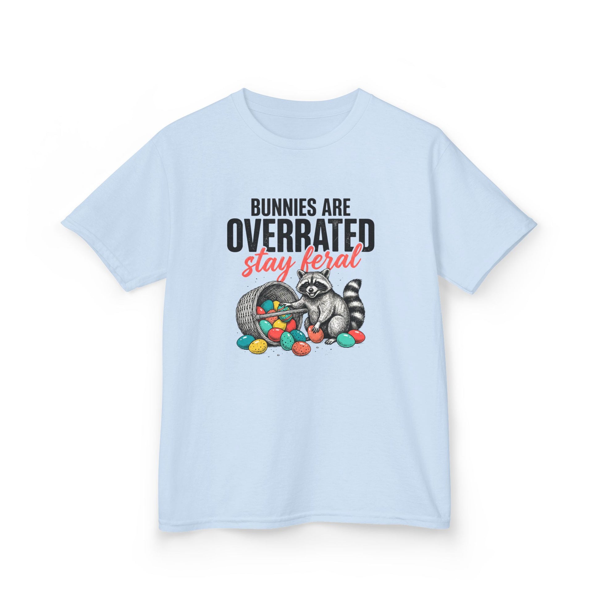 Kids Tee — “Bunnies Are Overrated, Stay Feral” Raccoon Easter Shirt