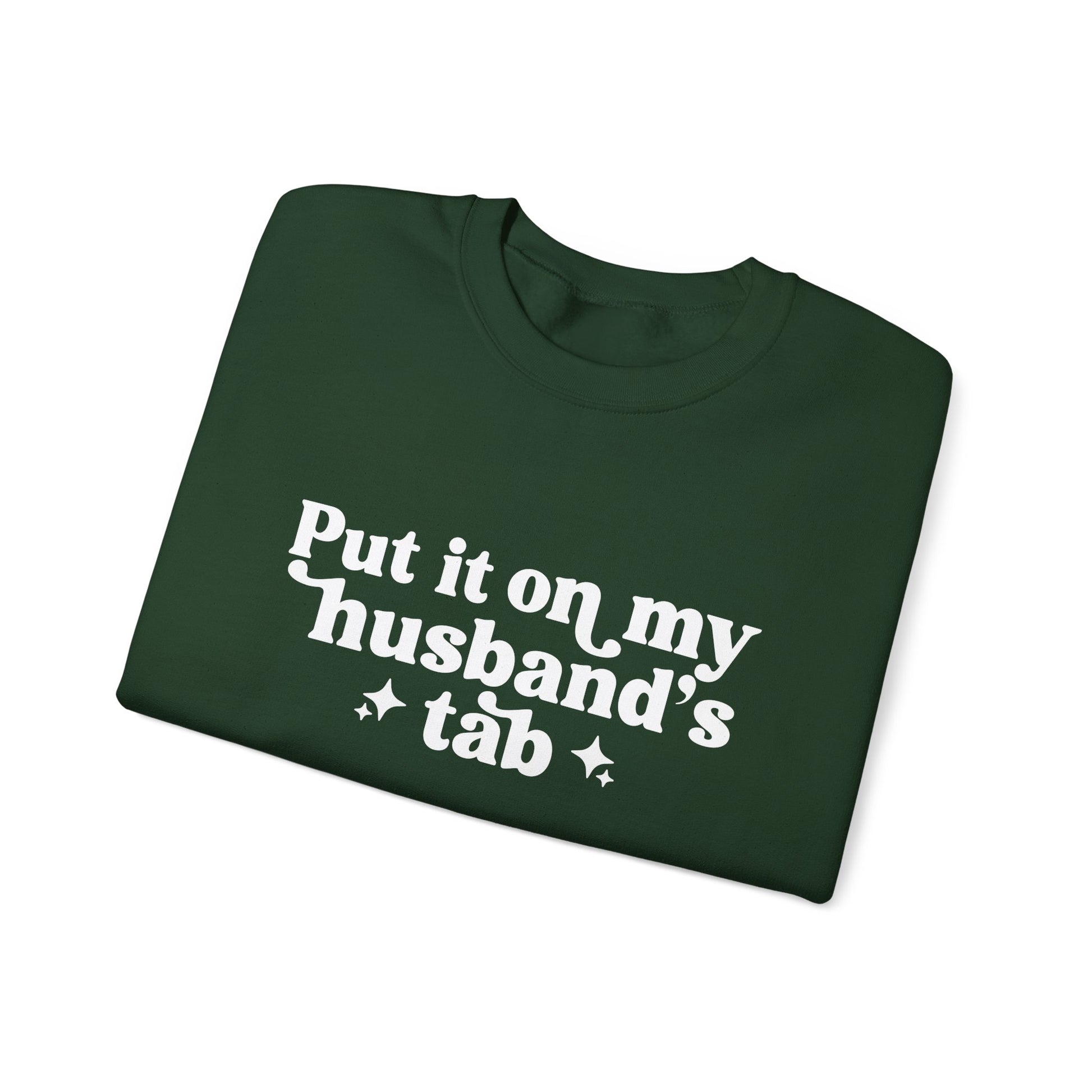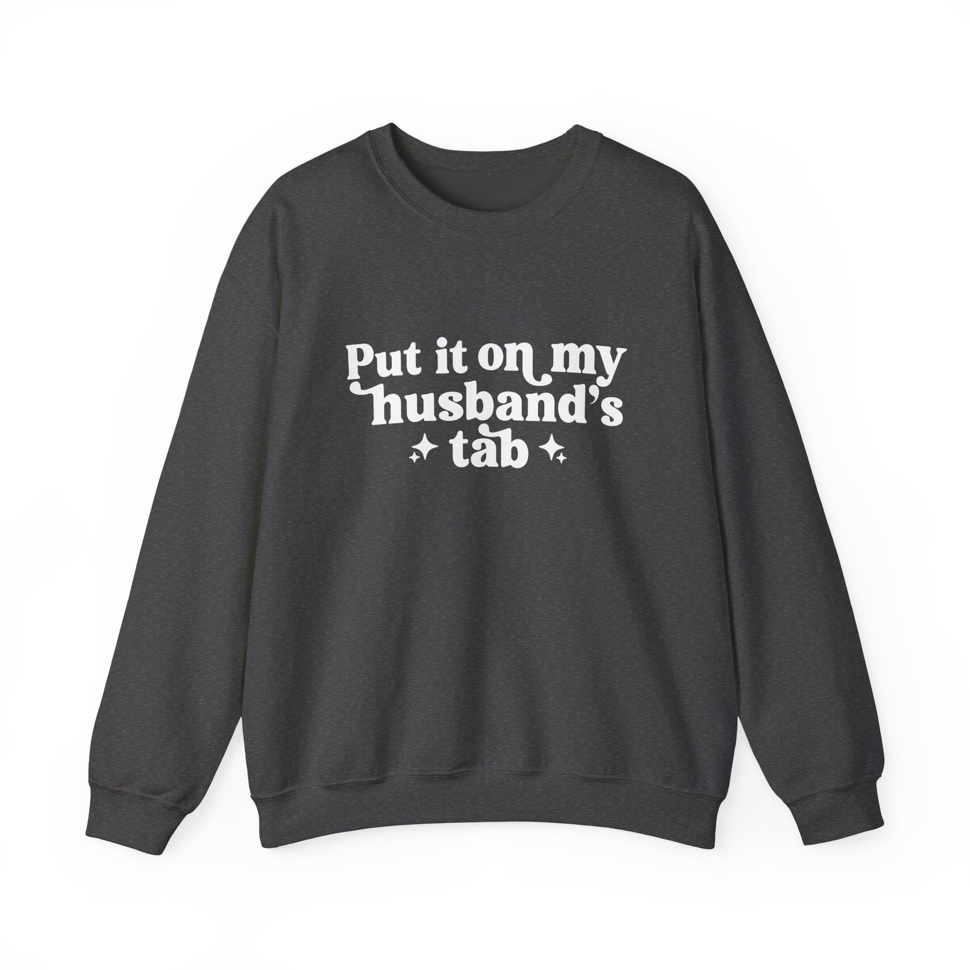 Put It On My Husband’s Tab Sweatshirt — Funny Wife Crewneck for Moms & Newlyweds