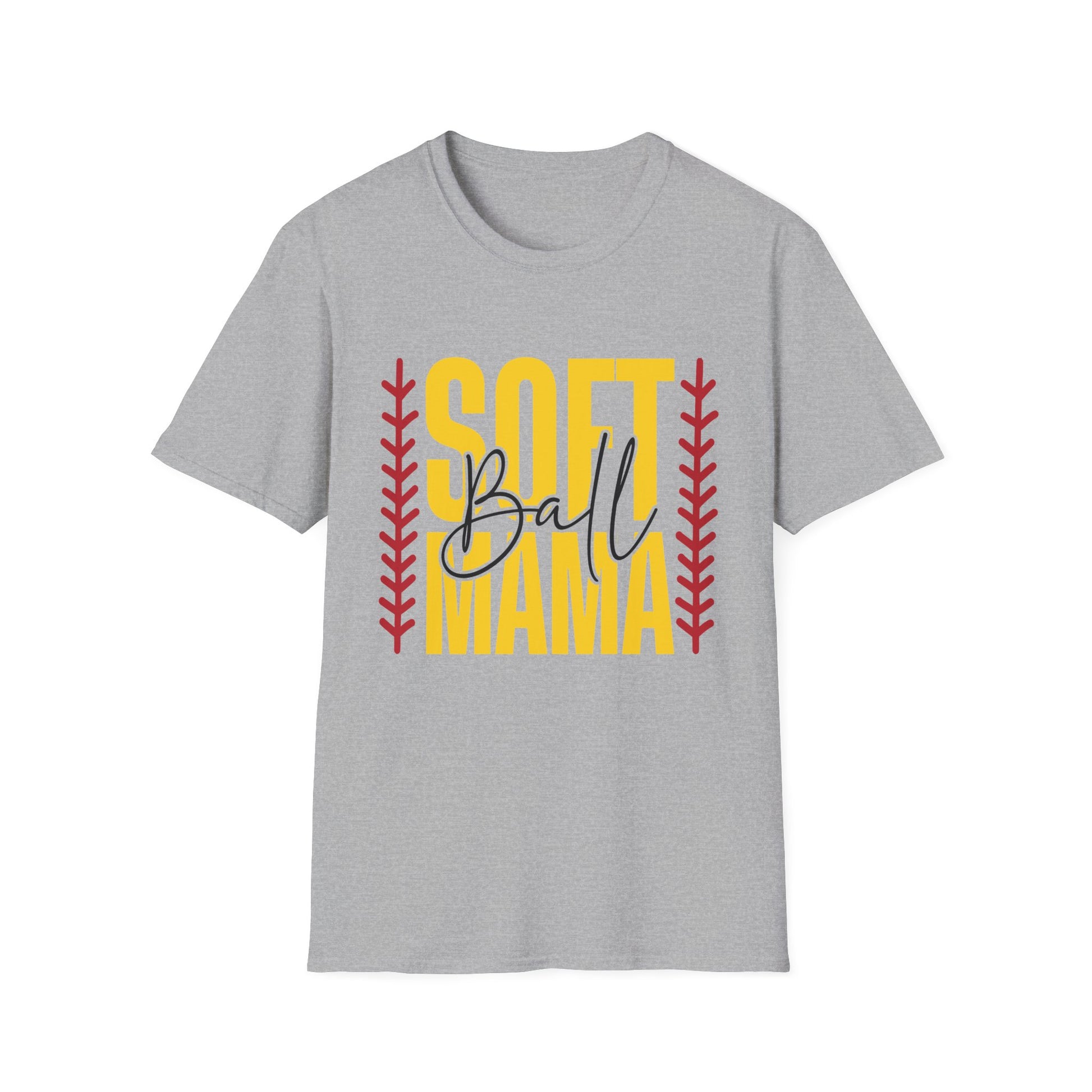 This soft, breathable tee carries a bold, sunny “SOFTBALL MAMA” design framed by stitch-like lines that echo the curve of a ball. It sits light on the skin — a quick layer after early-morning practices, a casual top for tournament weekends, or the shirt you reach for when you’re cheering from the dugout. The lettering feels upbeat without shouting; the layout reads clean from a distance and stays comfortable up close. Throw it on with jeans, a hoodie, or a team jacket and move between carpool, snacks, and warmups with ease.