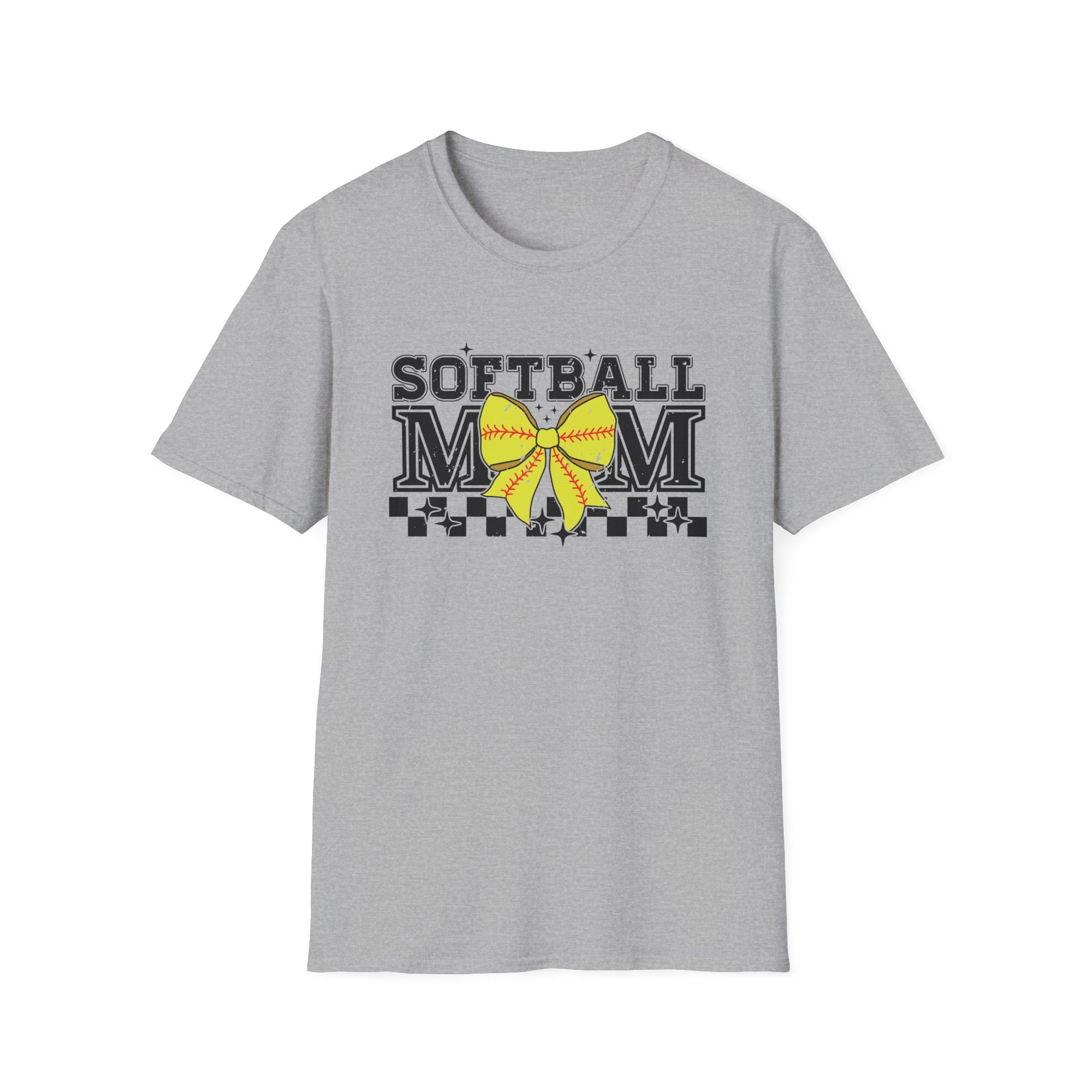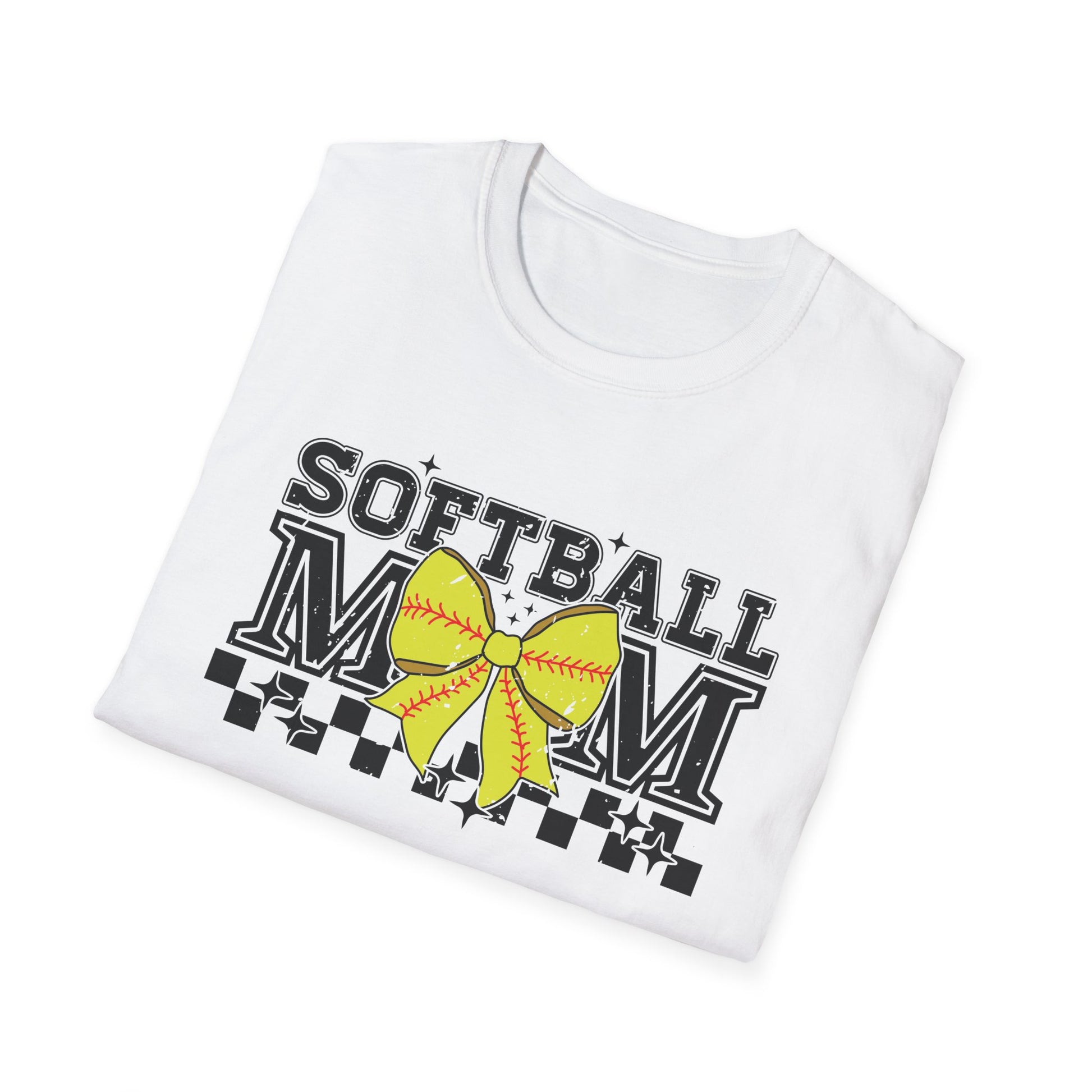 Softball Mom T-Shirt – Yellow Bow Checkerboard Design