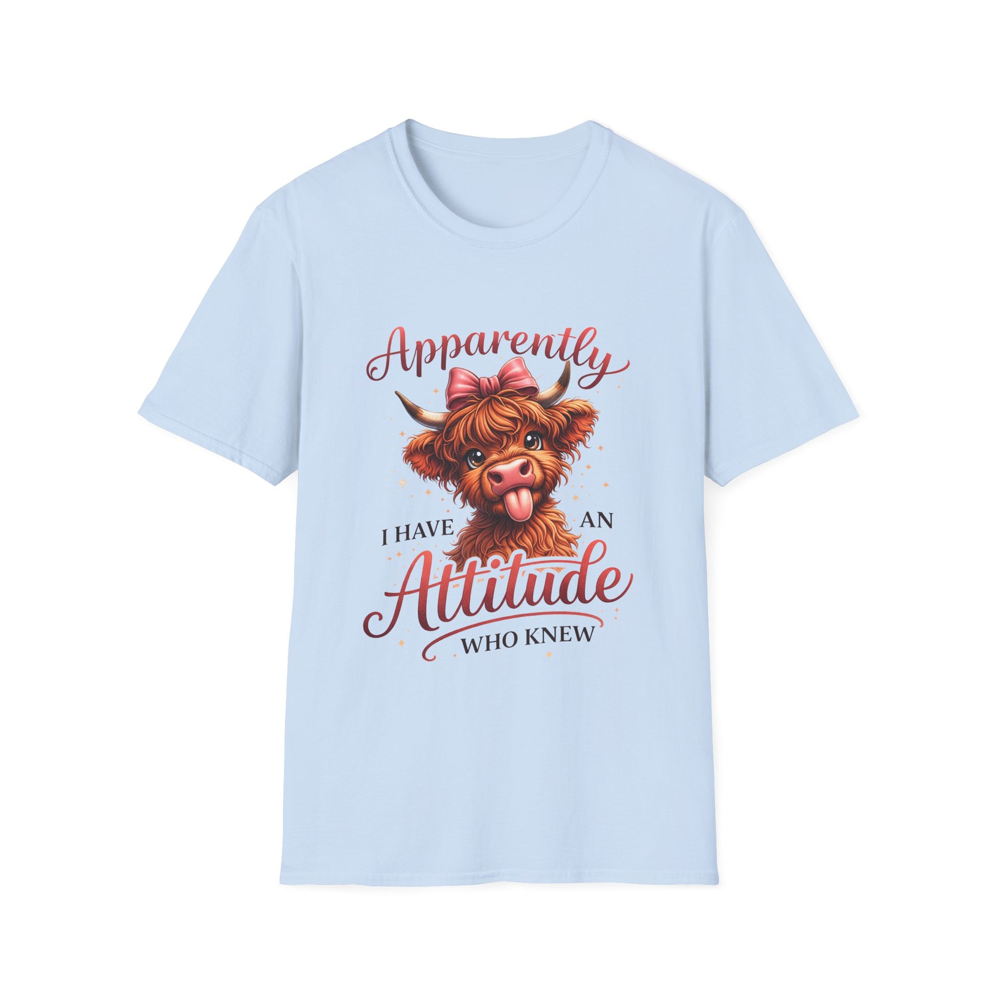 T-Shirt — "Apparently I Have An Attitude" Cute Highland Cow Graphic Tee