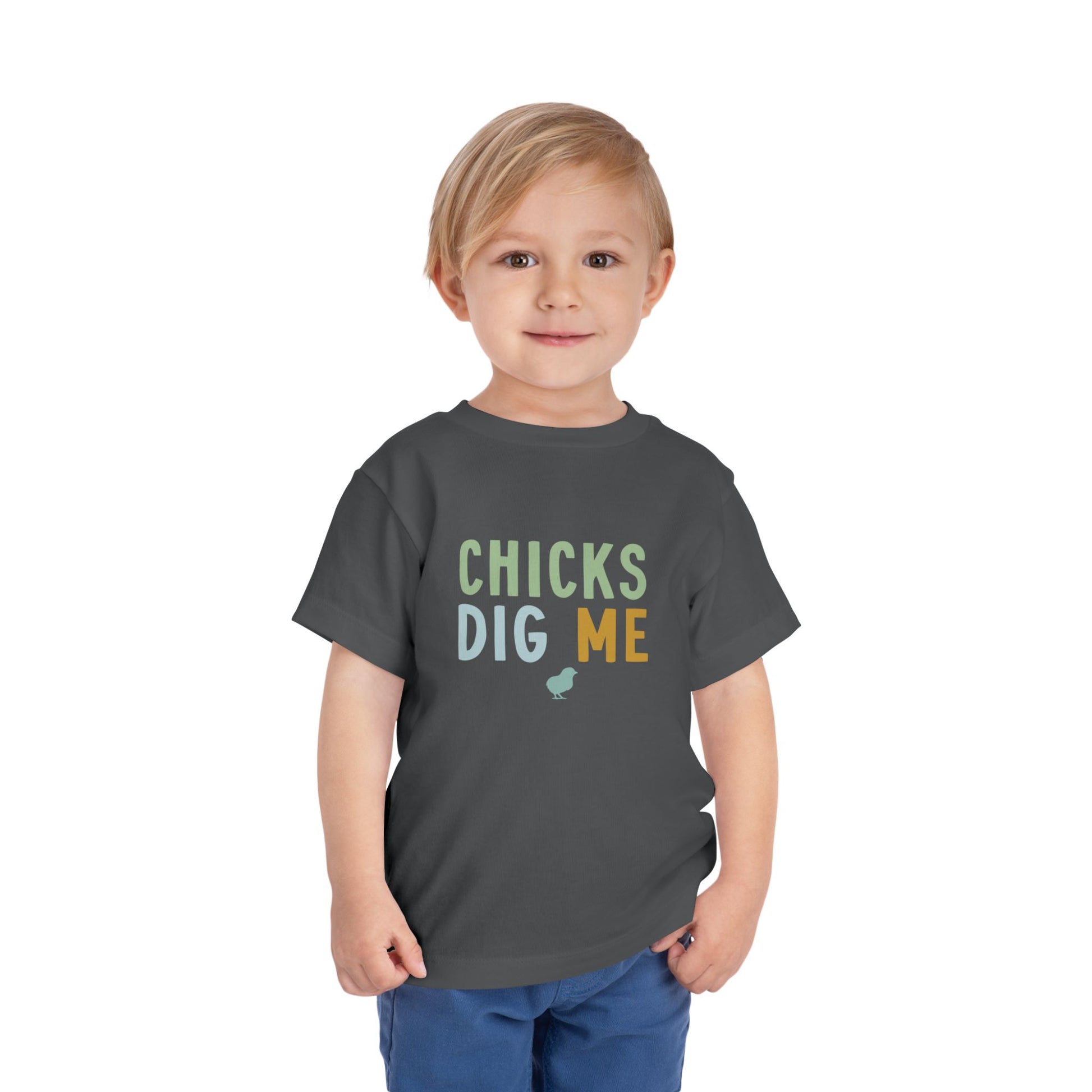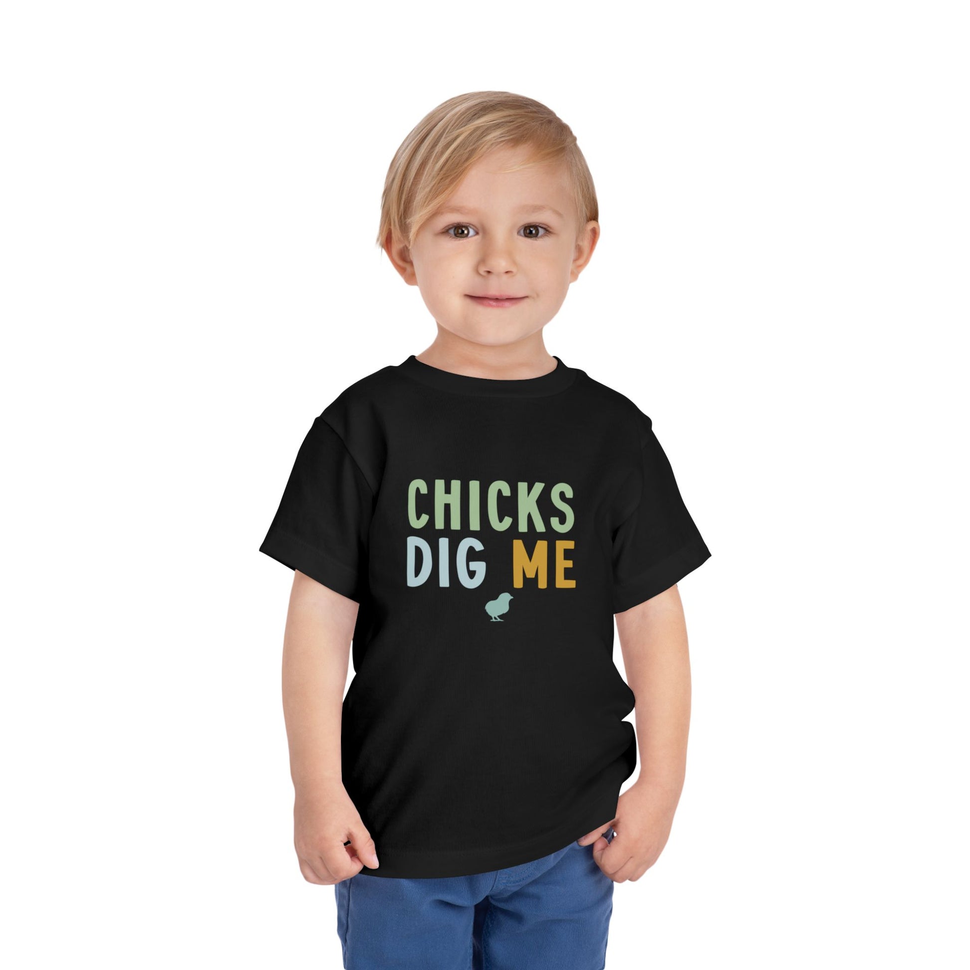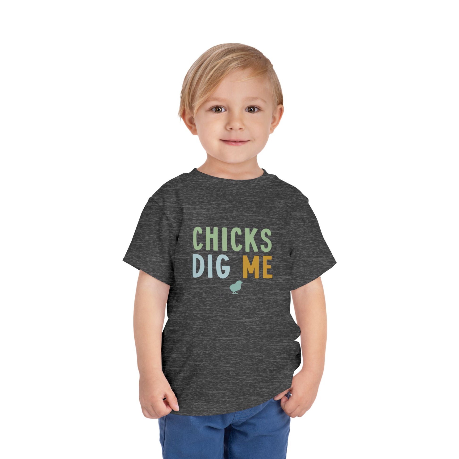 Toddler Tee — "Chicks Dig Me" Cute Baby Chick Graphic Shirt