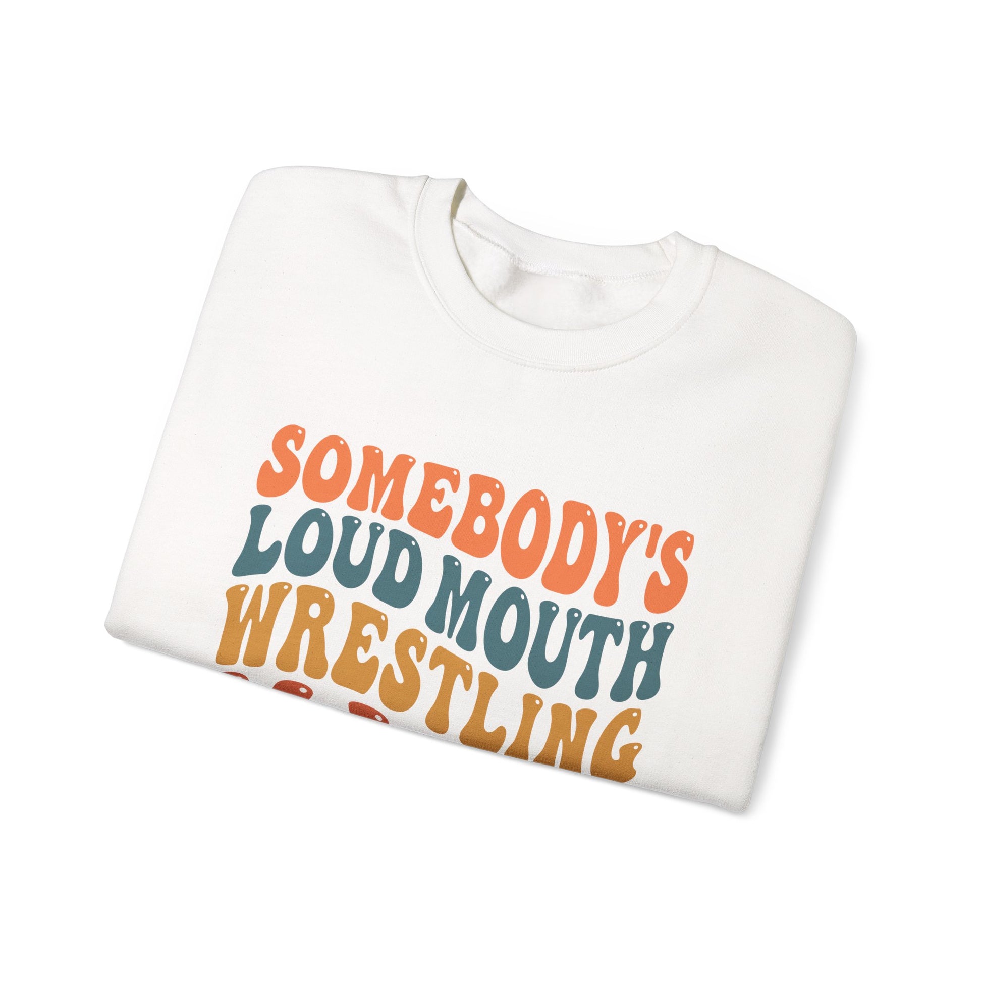 Wrestling Mama Crewneck Sweatshirt — "Somebody's Loud Mouth" Retro Graphic